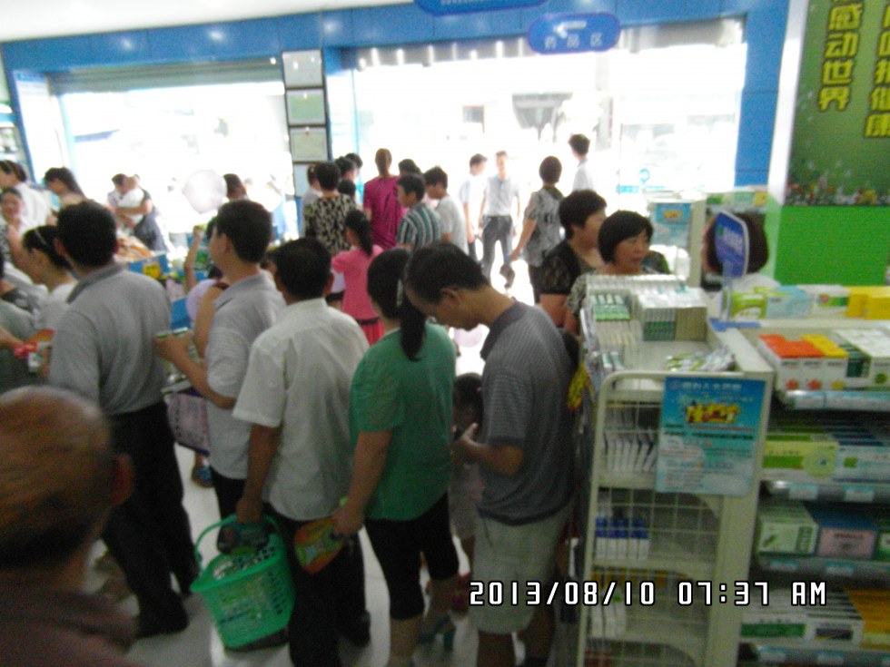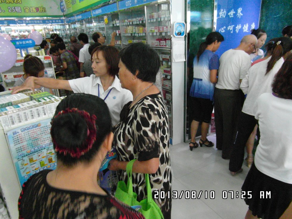 为方便竹溪百姓购药方便,用心人大药房连锁有限公司与2013年8月10在竹溪三堰路又开设一家分店,开业当天当地百姓纷纷进店选购。