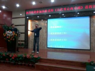 1月13日公司组织了县市各片区门店80名优秀员工,赴车城明珠商务宾馆参加了由国内知名讲师--高毅老师分享的《从优秀走向卓越》课程的学习。通过学习员工收获很大,深受鼓舞,结合自身的存在的不足,纷纷上台分享:从现在开始,要选择卓越,选择积极,选择主动,坚信用自己的忠诚与业绩,用自己的积极和主动去追求卓越,热爱自己的岗位,热爱自己的企业。